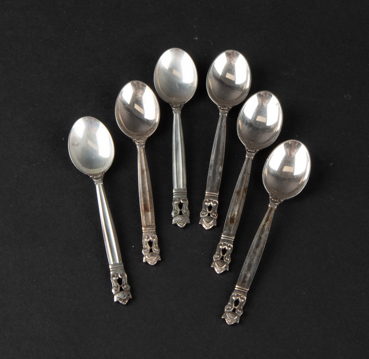 Akorn - sex smáskeiðar - Silfur - 73 g. Merkt. 10 cm