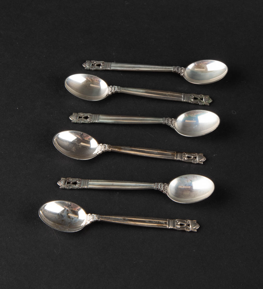 Akorn - sex smáskeiðar - Silfur - 75 g. Merkt. 10 cm