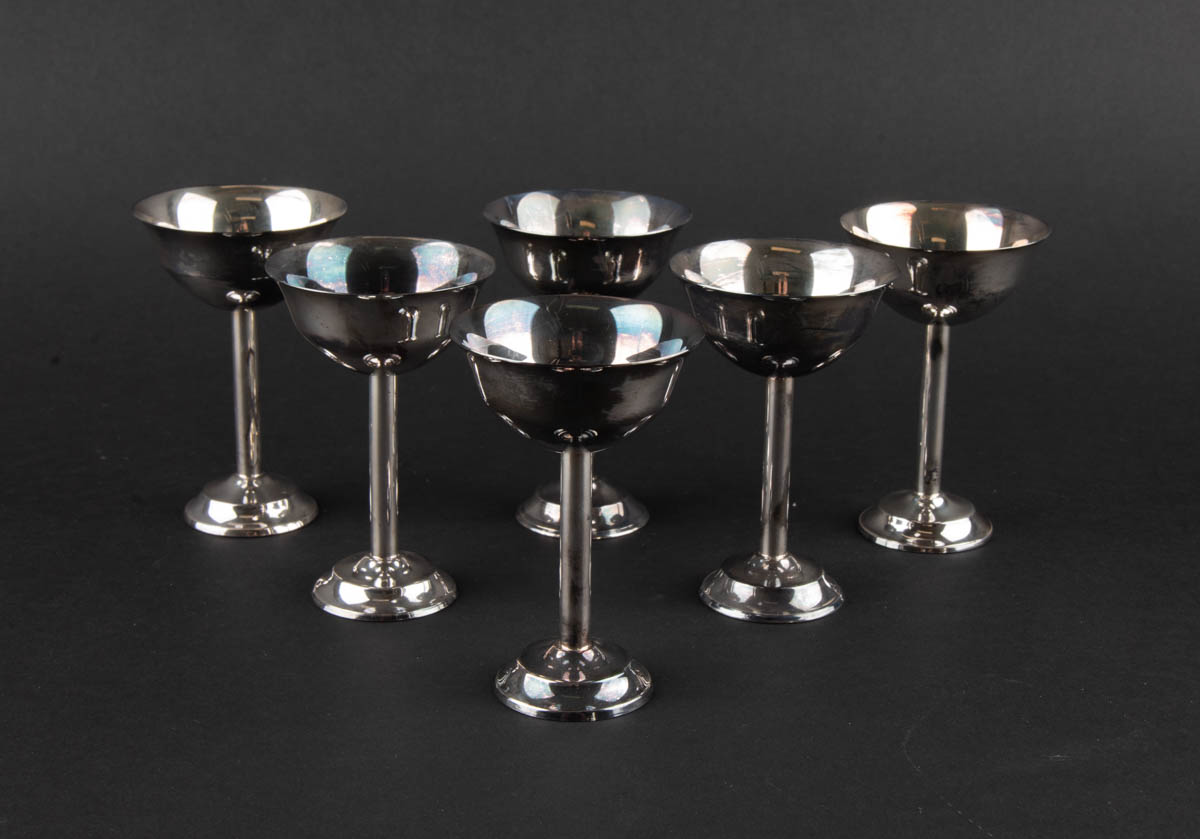 Sex silfurglös á fæti - Silfur - 383 g. Ómerkt. 10 x 7 cm