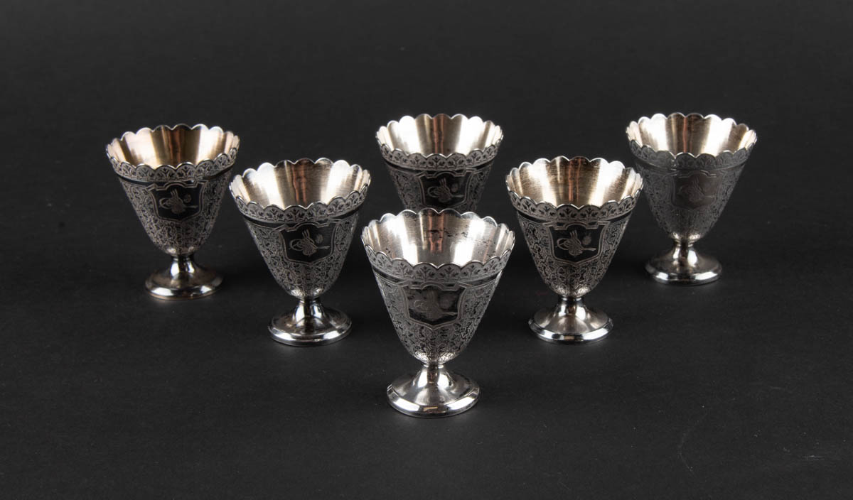 Sex koníaksglös - Silfur - 950s. 190g. Merkt. 6 x 5 cm