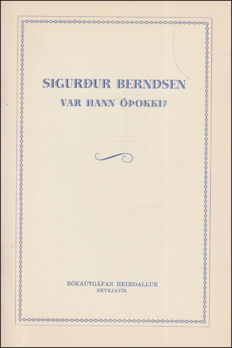 Sigurður Berndsen. Var hann óþokki? Eftir Braga Kristjónsson. Örlítið upplag. - Æviþættir. - Reykjavík. Bókaútgáfan Heimdallur, 1964. cm