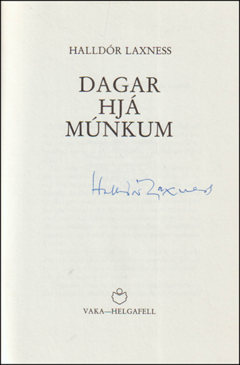 Dagar hjá múnkum. Eftir Halldór Laxness. Gott eintak í forlagsbandi. Áritað af Halldóri Laxness. - Laxness. - Reykjavík. Vaka-Helgafell, 1987. cm