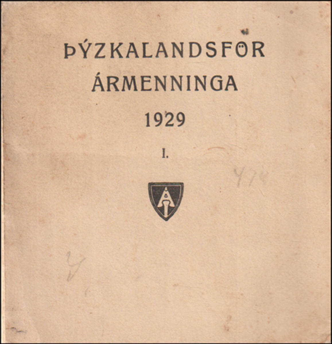 Þýzkalandsför Ármenninga 1929. Hér rita um ferðina t.d. Lúðvíg Guðmundsson, Dr.phil. Reinhard Prinz, Benedikt G. Waage, Árni Óla. Svo eru hér umfjallanir erlendra blaða um glímukappana. Þýzkalandsfararnir voru: Stjórn Glímuflokksins, Jón Þorsteinsson íþróttakennari sem jafnframt var fararstjóri, Jens Guðbjörnsson, formaður Glímufélagsins Ármann, Lúðvig Guðmundsson skólastjóri. Íþróttamenn Friðrik Jesson, Óskar Einar Þórðarson, Georg Þorsteinsson, Ragnar Kristinnsson, Helgi Kristjánsson, Sigurður Grímss, Thorarensen, Jón Guðmann Jónsson, Stefán E. Jónsson, Jörgen Þorbergsson, Valdemar Kristinnsson, Konráð Gíslason, Viggo Nathanelsson, Óskar Þórðarson, Þorsteinn Einarsson og Þorsteinn Kristjánsson. Framkvæmdastjór: Dr. phil. Reinhard Prinz. Blaðamaður: Árni Óla. - Ferðabækur. - Reykjavík. Útgefendu. Gamlir Ármenningar, 1930. cm