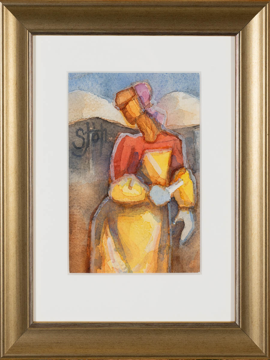 Síldarstúlka - Vatnslitir - Merkt. 16 x 11 cm