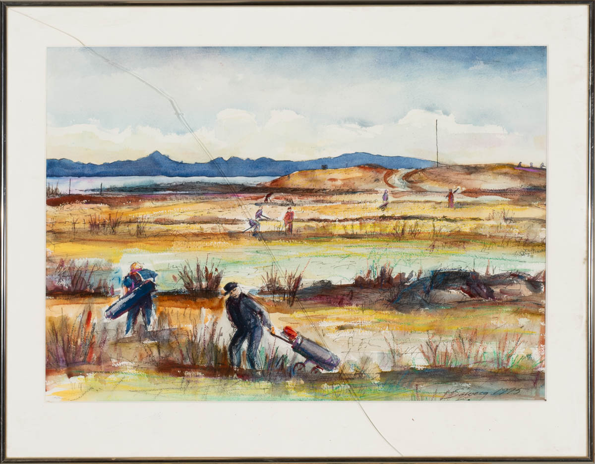 Á golfvellinum - Brotið gler - Vatnslitir - 1995. Merkt. 40 x 56 cm
