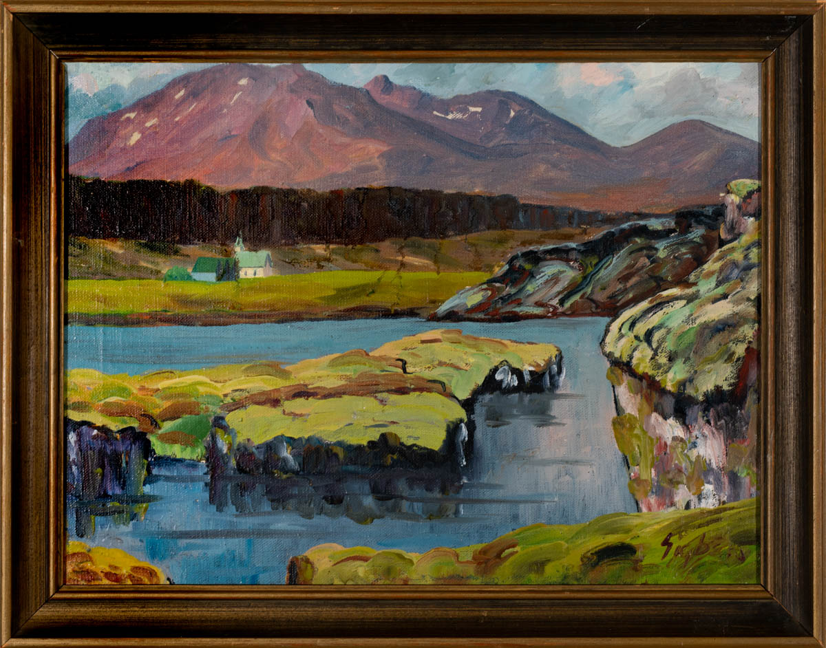 Þingvellir - Olía - Merkt. 29 x 39 cm