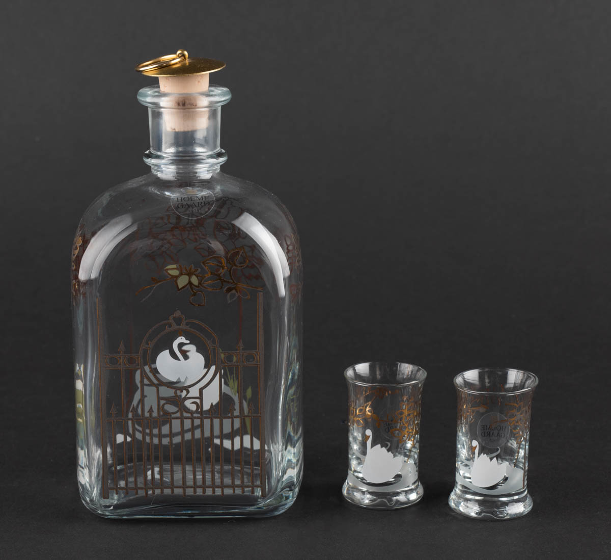 Jólaflaska 2007 og tvö staup - Gler - Staup: 6 x 3 cm. Ómerkt. 19 x 10 cm