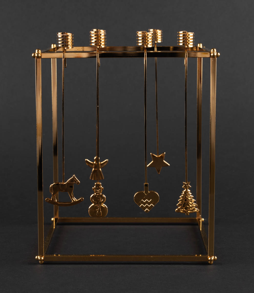 Sex Jólakertastjakar með standi - Gullhúðað - Málmur - Merkt. 19 x 16 cm