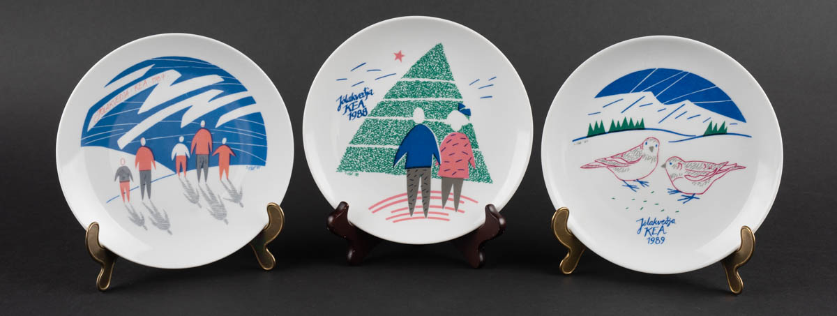 Jólakveðja KEA 1987 -1989 - Veggplatti - Postulín - Glit. Merkt. 19 x 19 cm