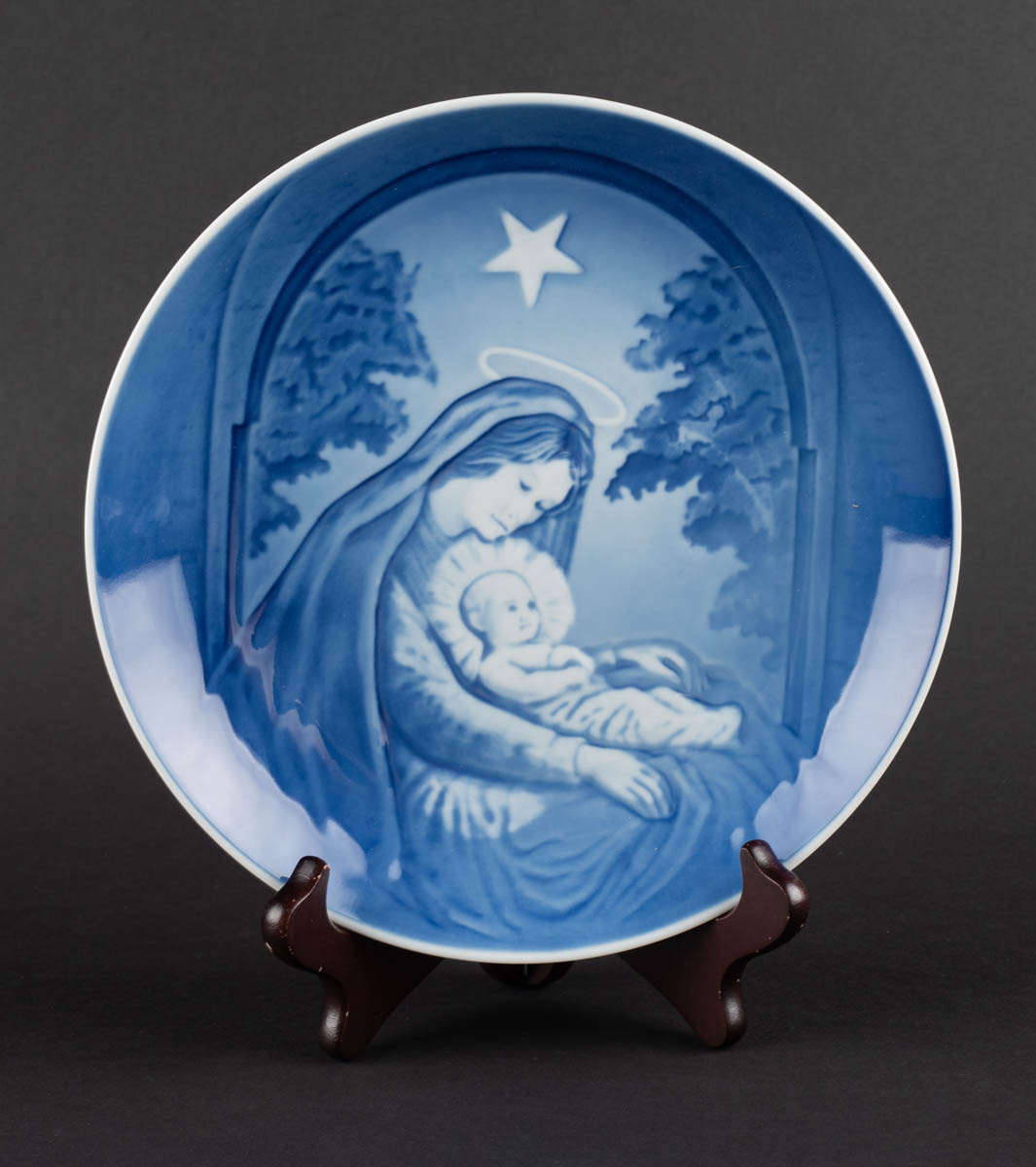 Madonna og barn - Platti - Postulín - #9202. Merkt. 23 x 23 cm
