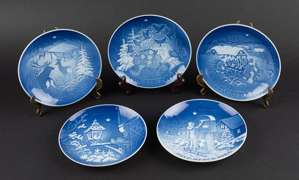 Juleaften 1980-1984 - fimm plattar - Postulín - Merkt. 18 x 18 cm