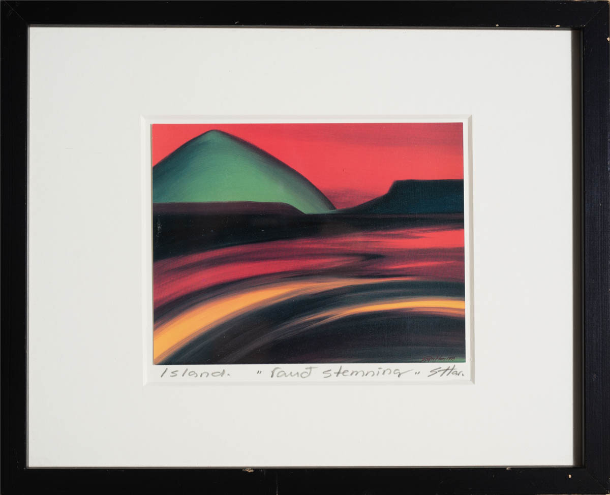 Rauð stemning - Prent - 1993. Merkt. 12 x 16 cm