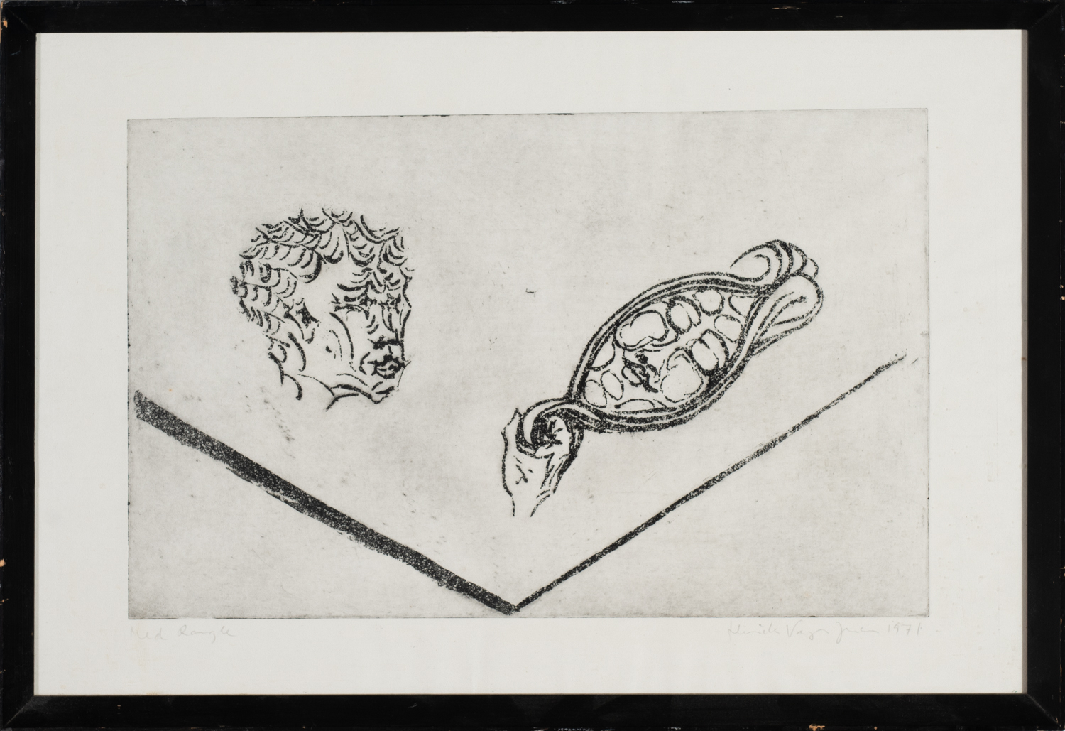 Spegilmynd - Þrykk - 1971. Merkt. 25 x 38 cm