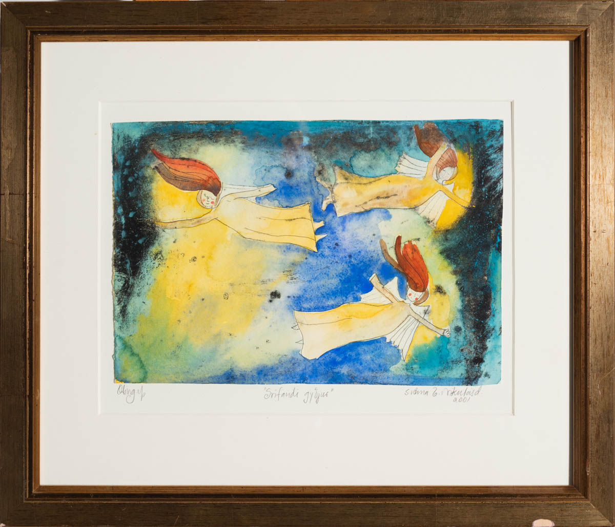Svífandi gyðjur - Þrykk - 2001. Merkt. 20 x 30 cm