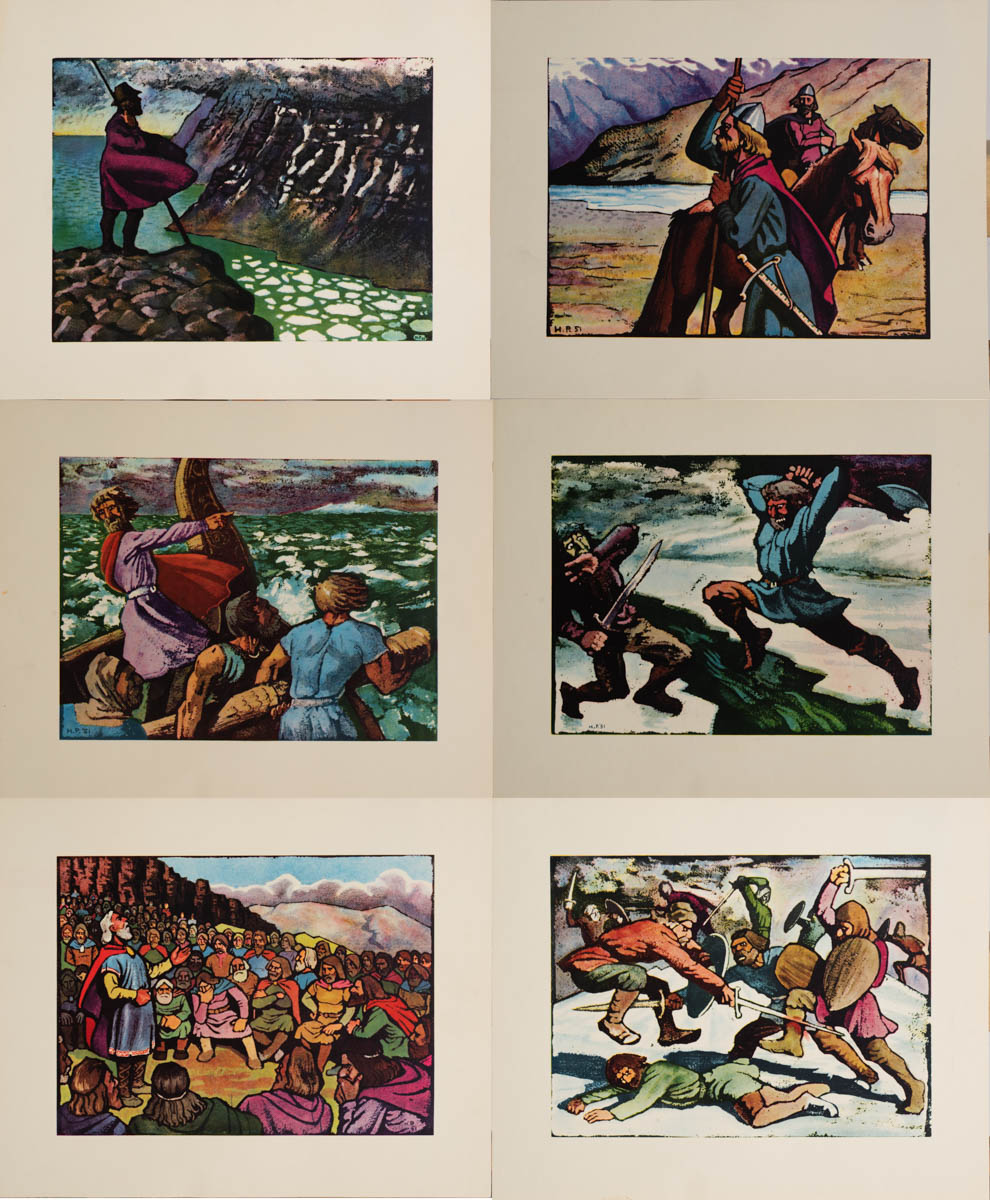 Íslendingasögur - 6 prent saman - Prent - Merkt í plötu. 28 x 35 cm