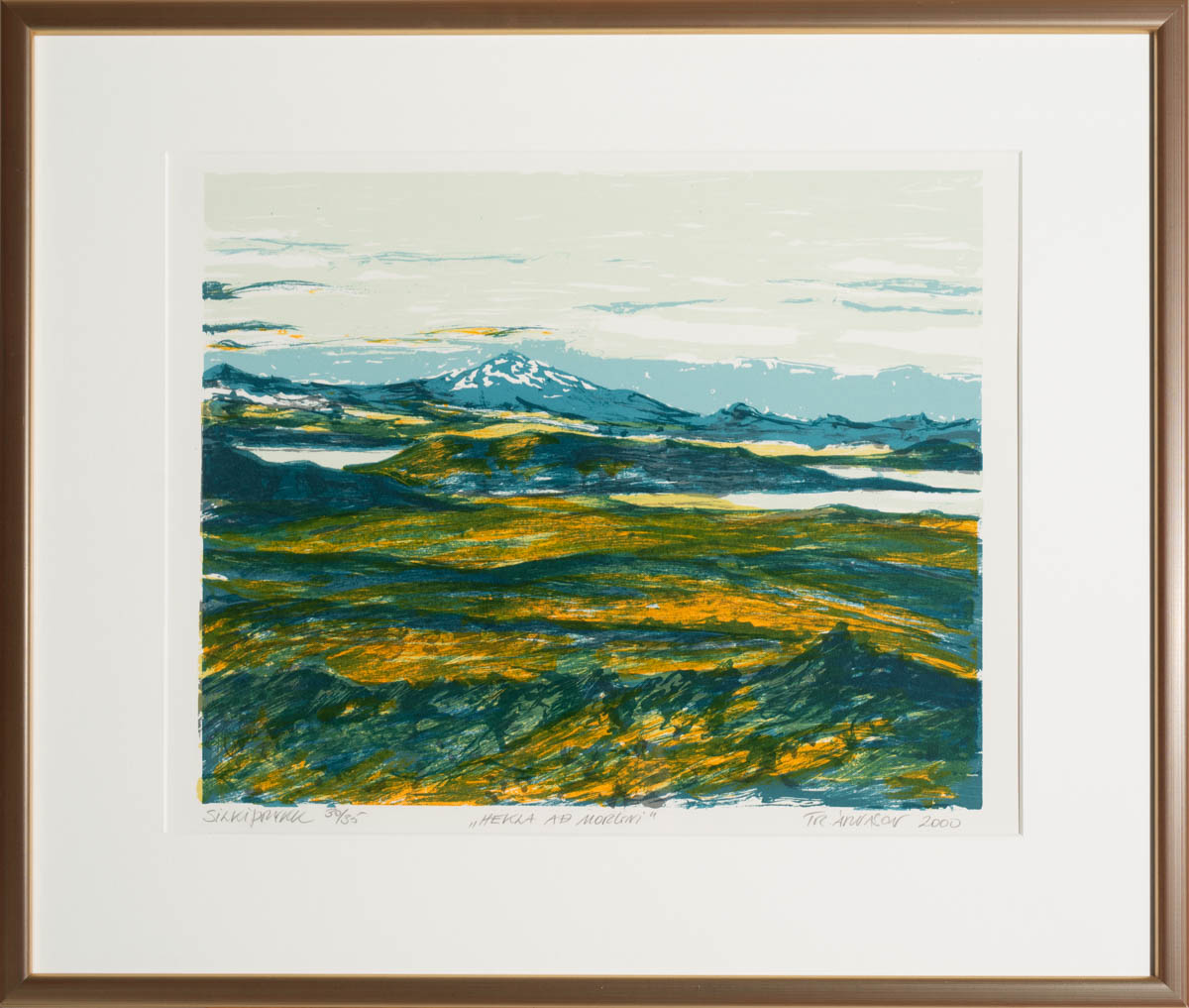 Hekla að morgni - Silkiþrykk - 2000. Merkt. 38 x 46 cm