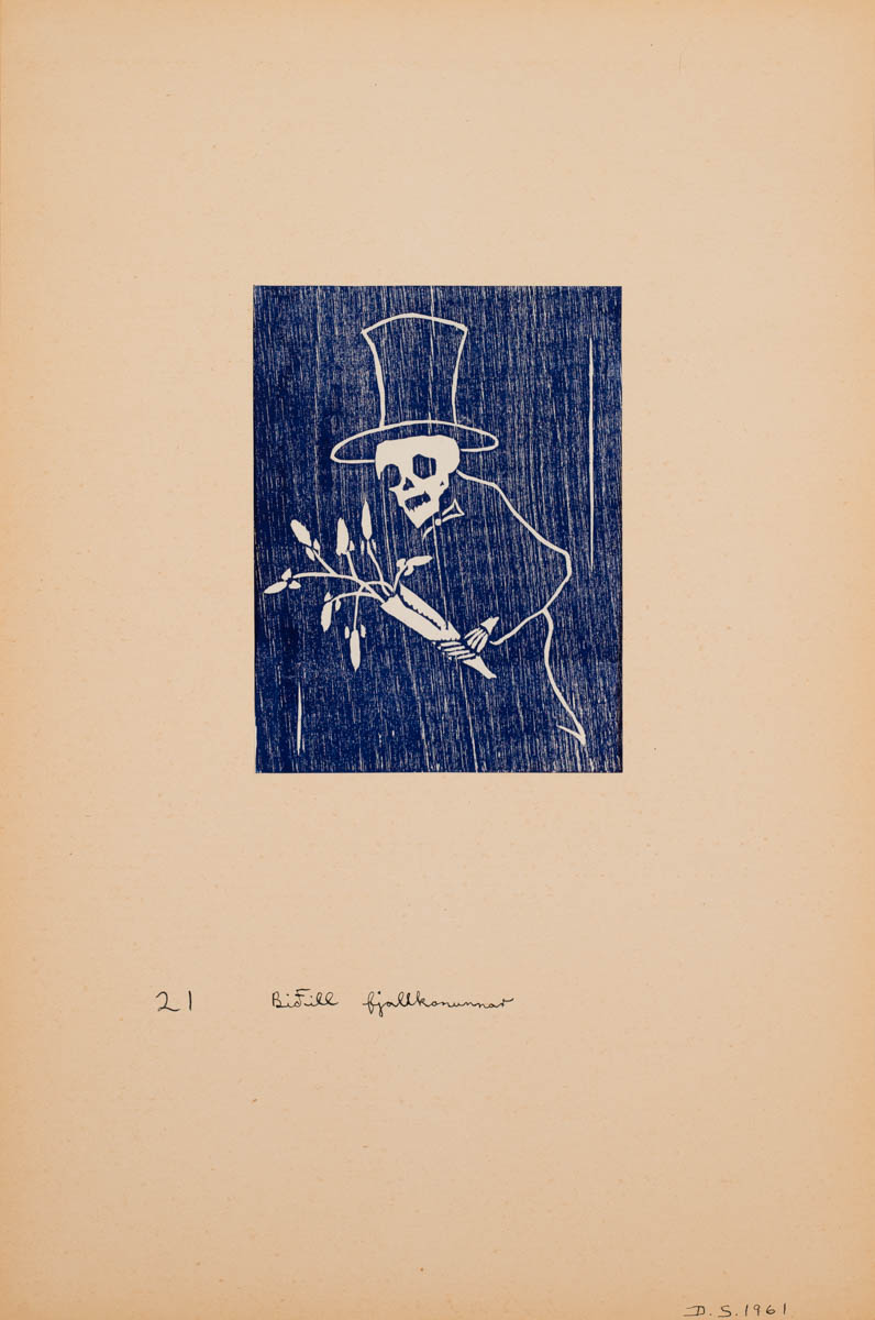 Biðill fjallkonunar - óinnrammað - Þrykk - 1961. nr. 21. Merkt. 18 x 14 cm