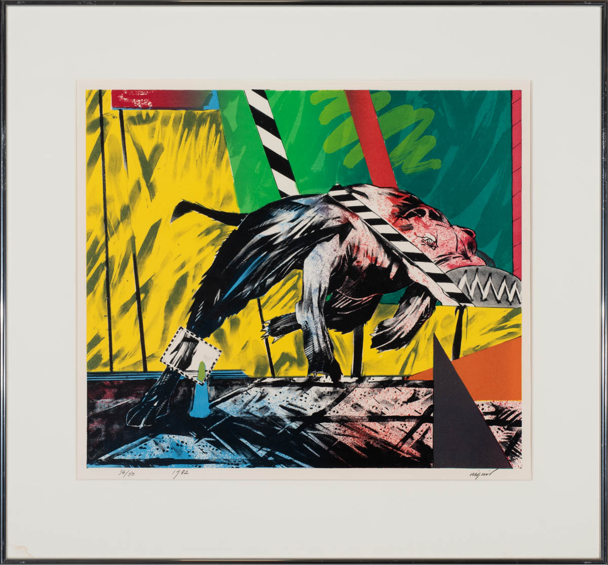 Óargadýr - Þrykk - 1982. Merkt. 41 x 46 cm
