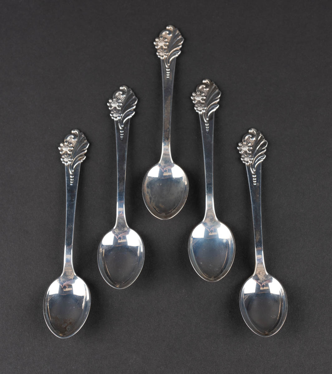 Fimm mokkaskeiðar - Silfur - 925s. 69 g. Merkt. 11 cm