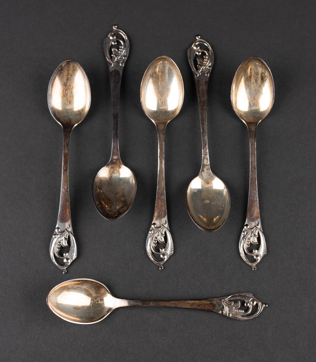 Sex silfurskeiðar - Silfur - 830s. 68 g. CBH. 1948. Merkt. 12 cm