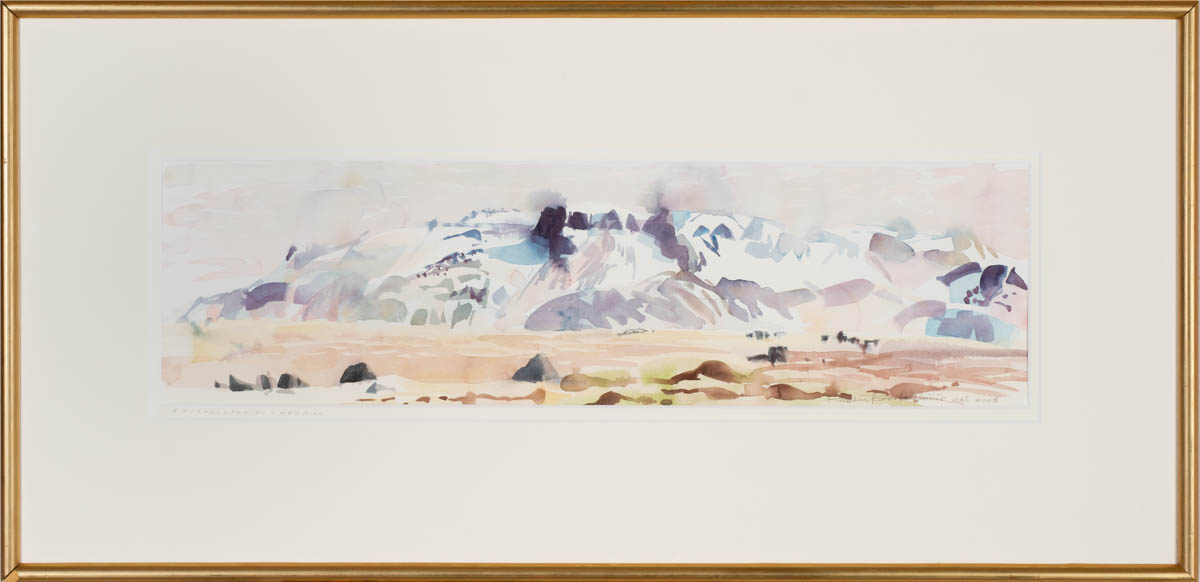 Á Mosfellsheiði - Hengill - Vatnslitir - 2003. Merkt. 17 x 61 cm