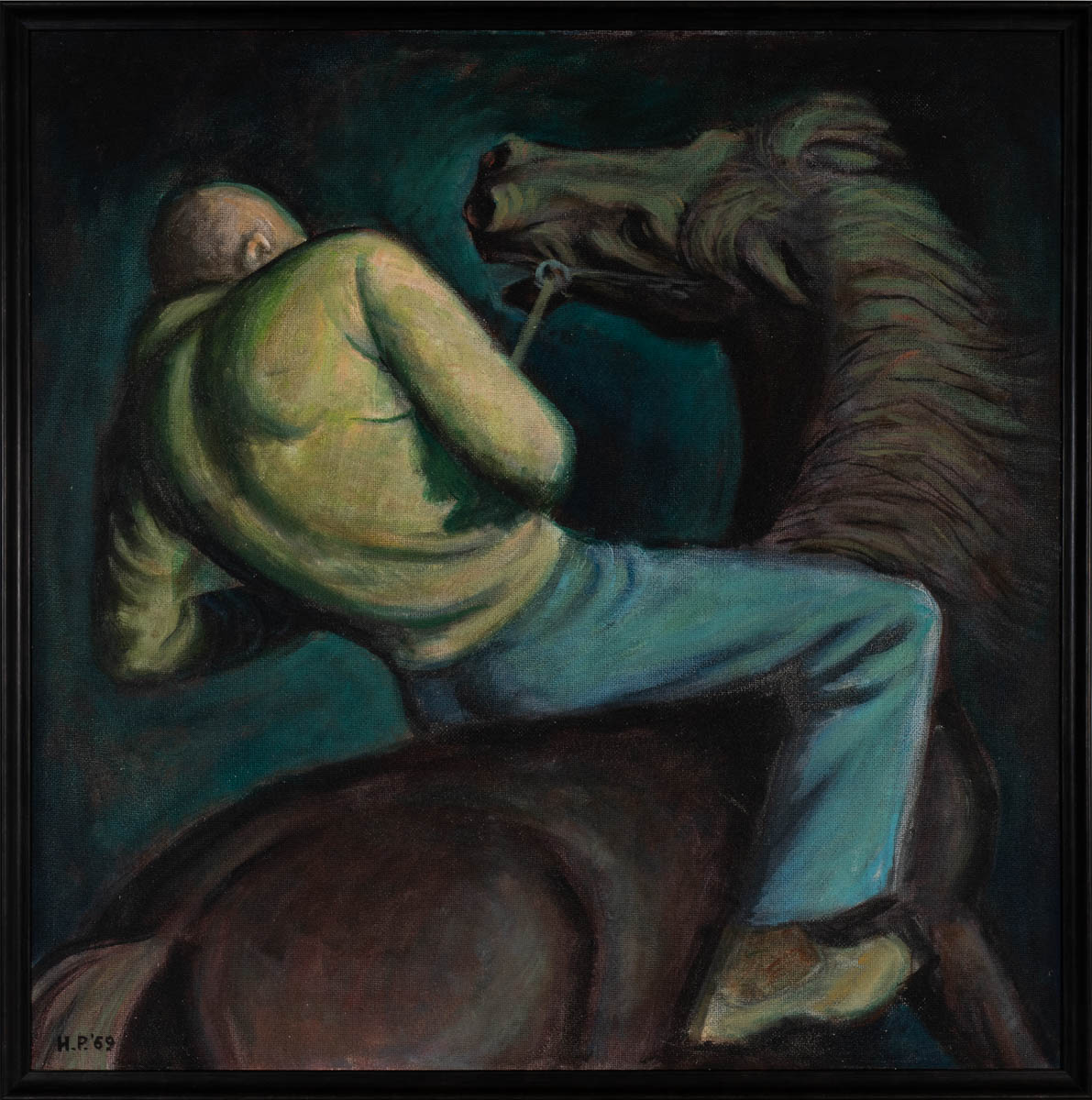 Við tamningar - Olía - 1969. Merkt. 75 x 75 cm