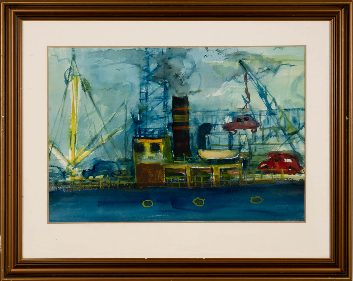 Bílaflutningar - Vatnslitir - Ómerkt. 32 x 46 cm