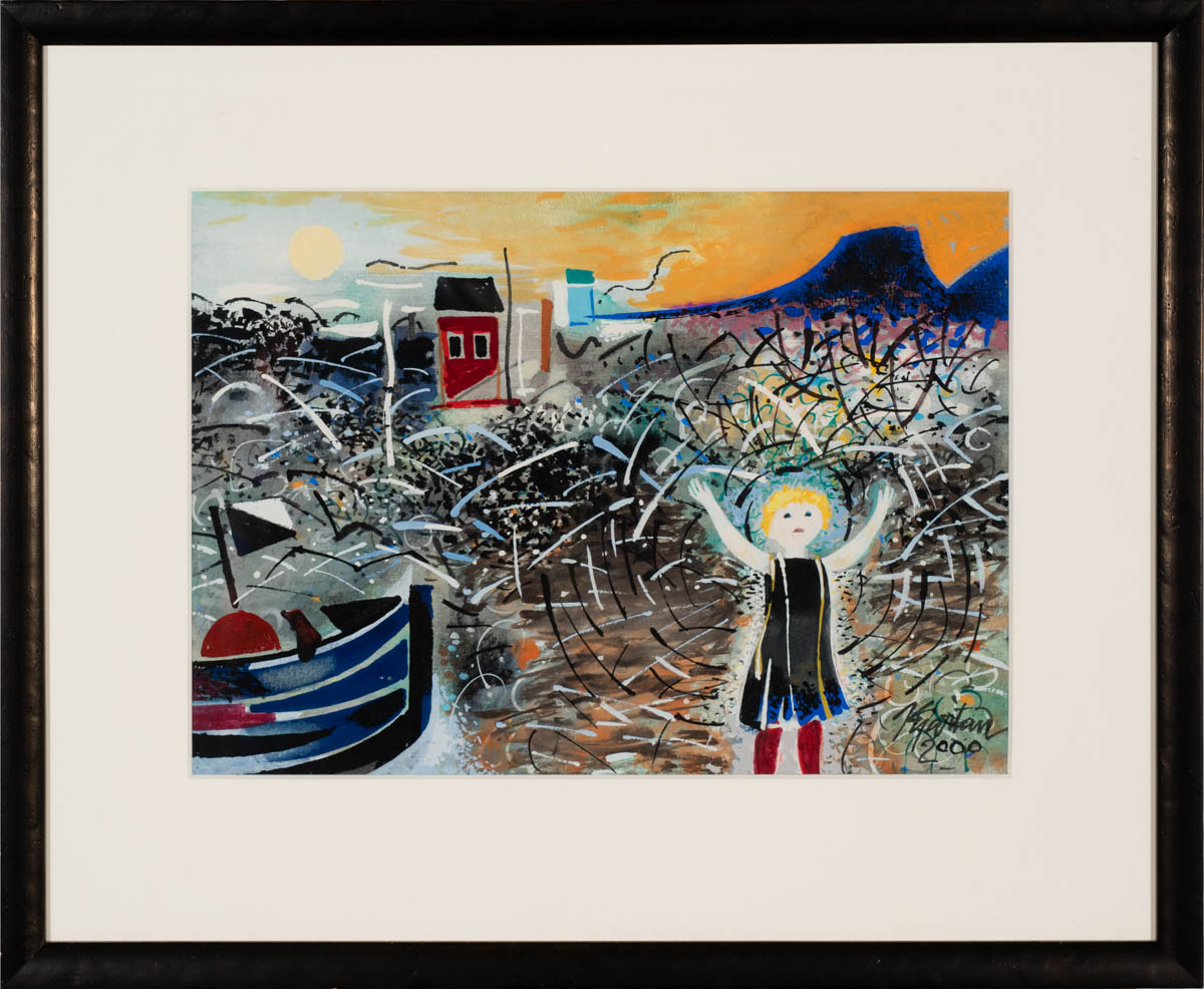 Stúlka - Gvass - 2000. Merkt. 26 x 37 cm