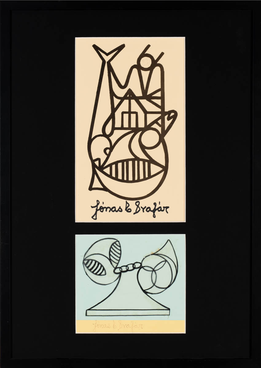 Án titils (neðri - teikning) og Landhelgi (efri - prent) - Penni og prent - Merkt. 52 x 37 cm