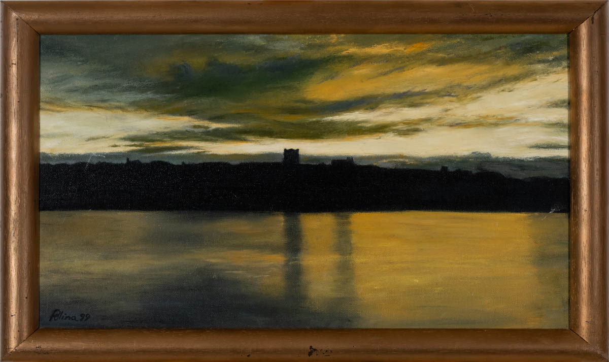 Golden enigma of Reykjavík - Olía - 1999. Merkt Poula. 30 x 45 cm
