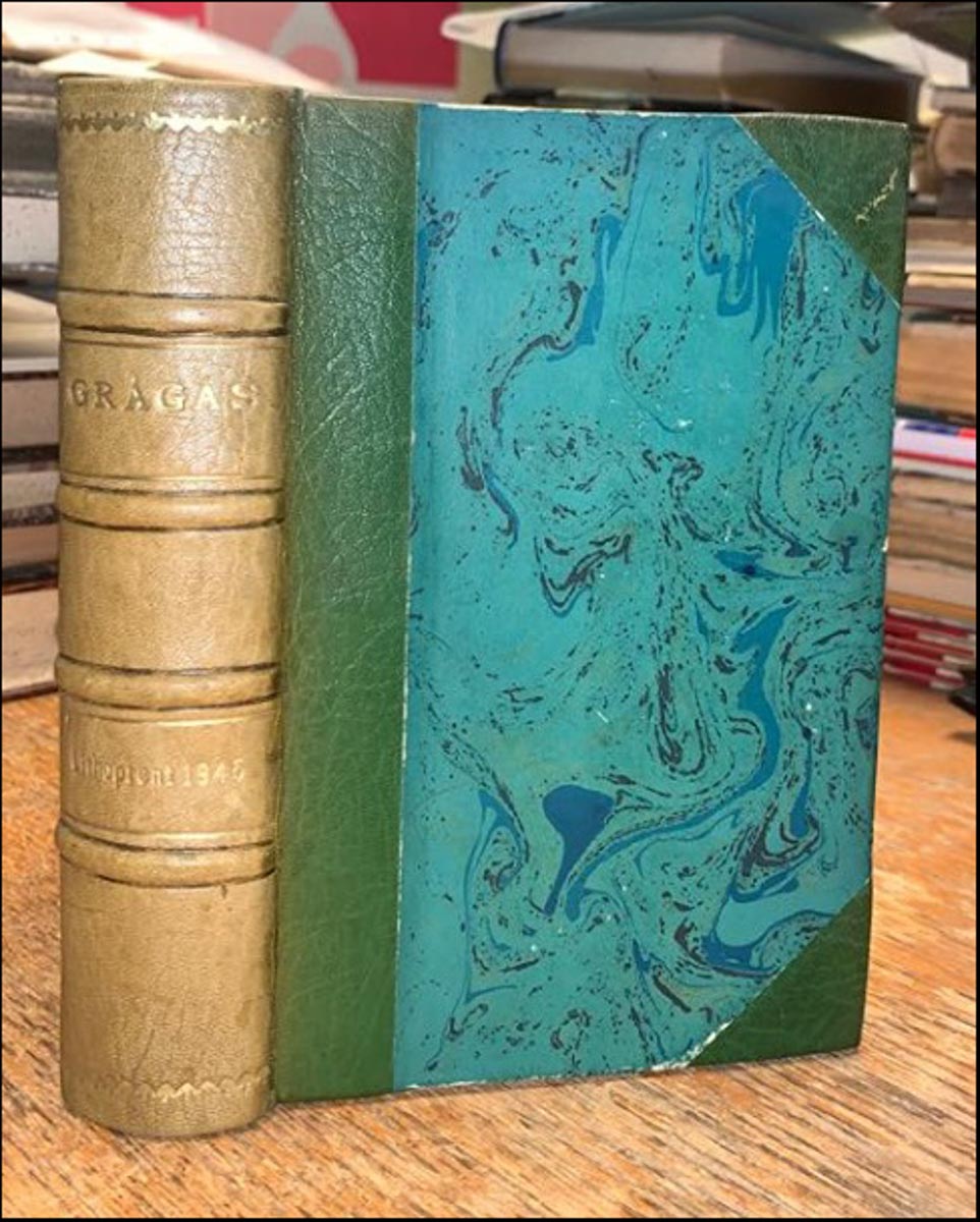 Grágás. Elzta lögbók Íslendinga. Útgefin eftir skinnbókinni í bókasafni konugs á kostnað Fornritafélags Norðurlanda í Kaupmannahöfn af Vilhjálmi Finsen. Ljósprentun útgáfunnar frá 1852. Ólafur Lárusson ritar formálsorð. - Lögfræði. - Reykjavík 1945. cm