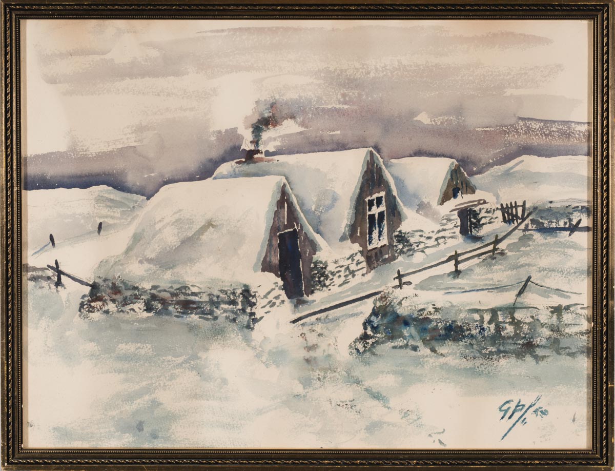 Vetrarskjól - Vatnslitir - 1950. Merkt. 37 x 50 cm