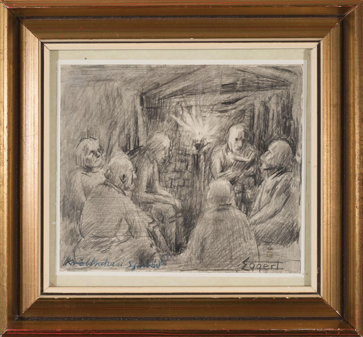 Kvöldvaka - Teikning - Merkt. 13 x 15 cm