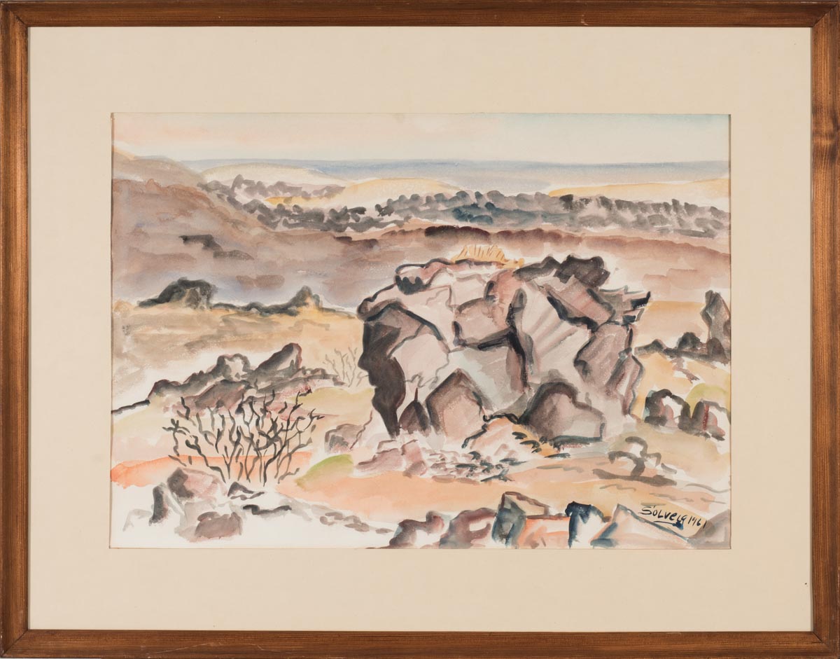 Í Vífilsstaða landi - Vatnslitir - 1961. Merkt. 34 x 49 cm