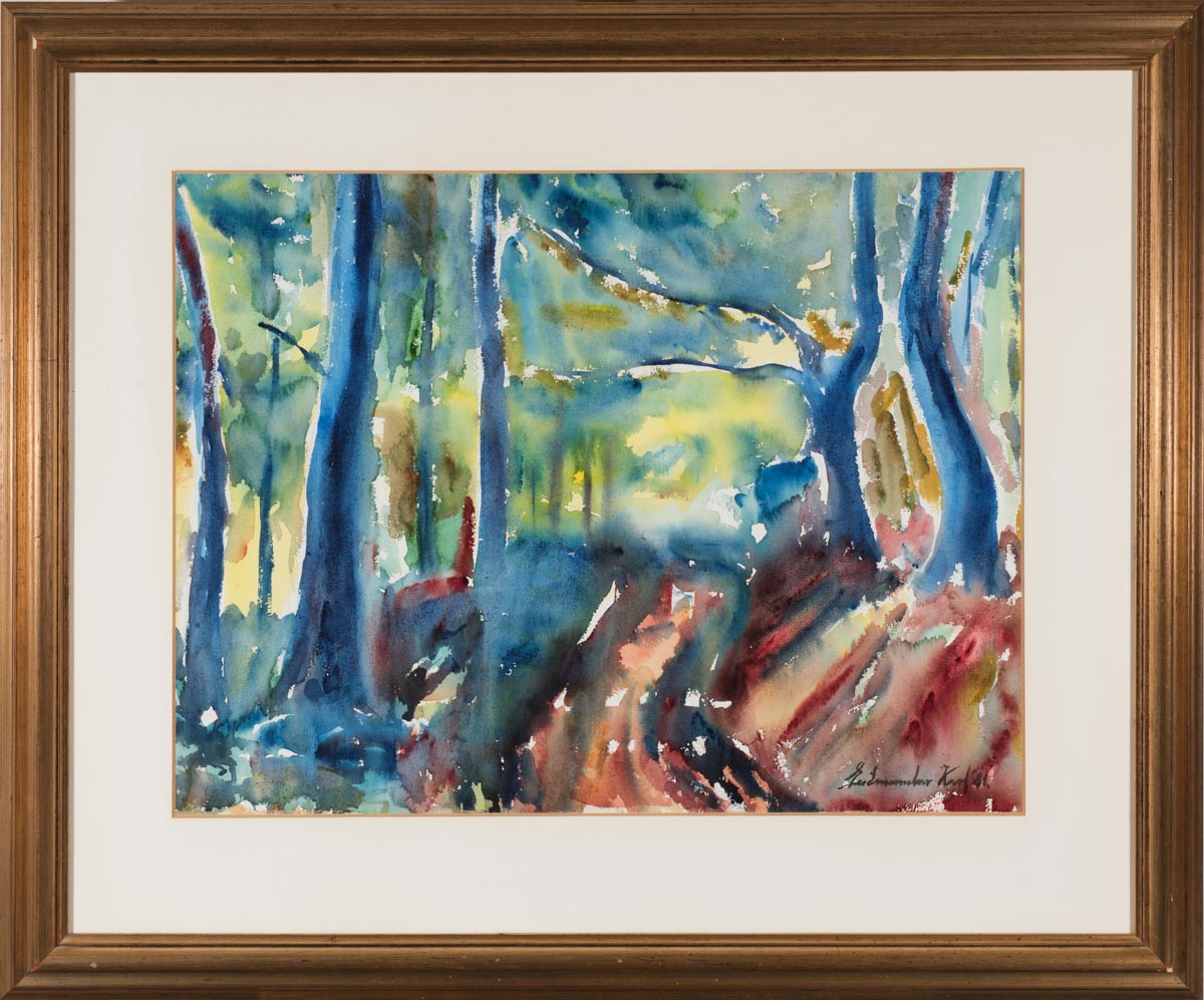 Í skóginum - Vatnslitir - 1981. Merkt. 44 x 58 cm