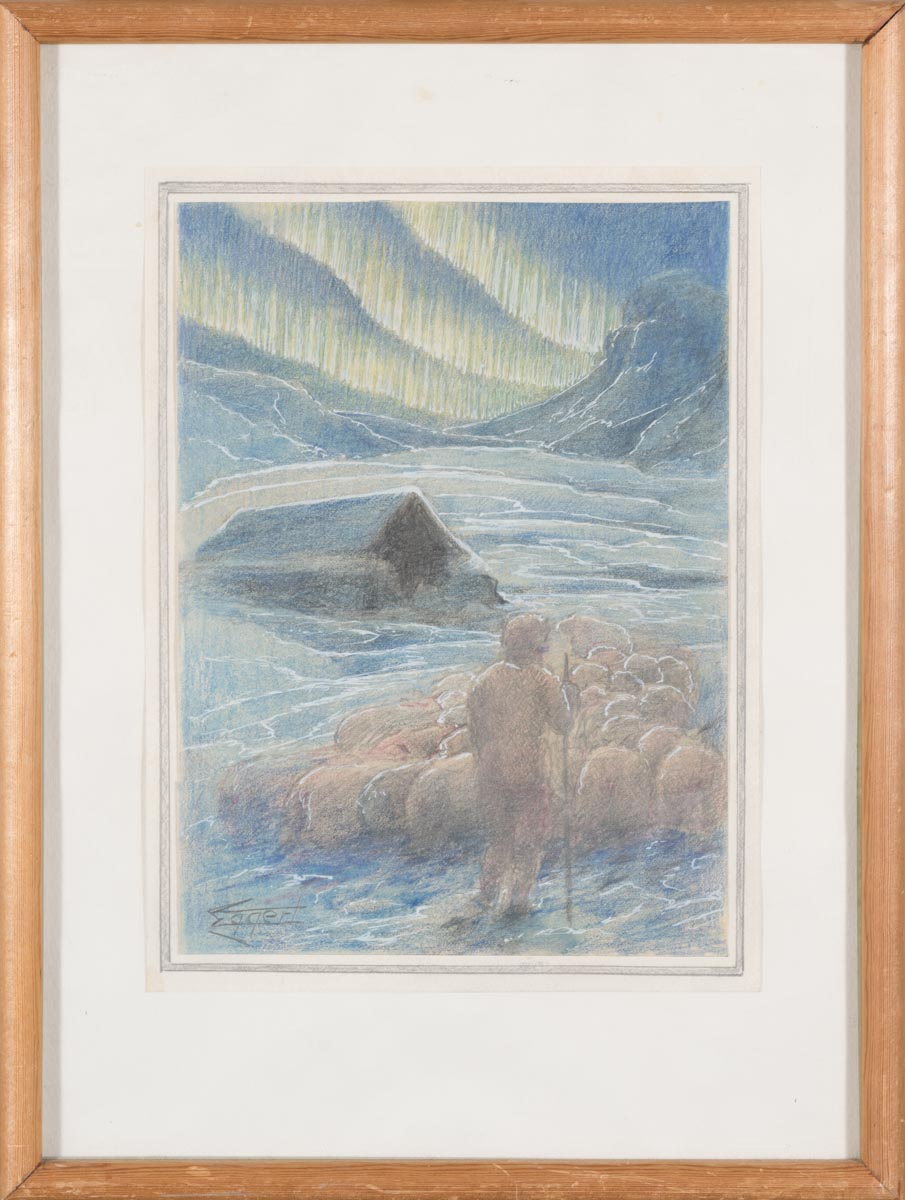 Smali í norðurljósum - Litkrít - Merkt. 26 x 18 cm