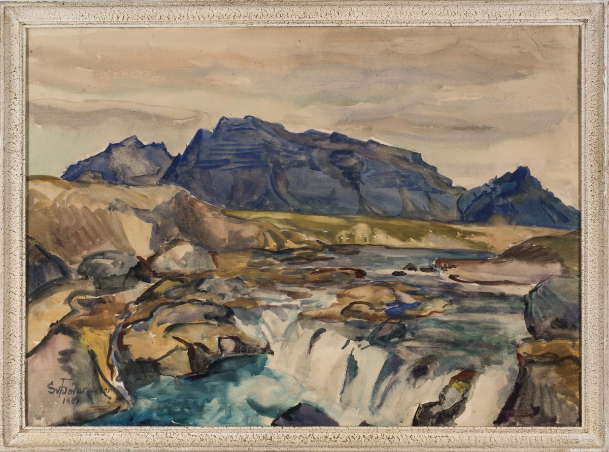 Við vatnið - Vatnslitir - 1949. Merkt. 53 x 73 cm
