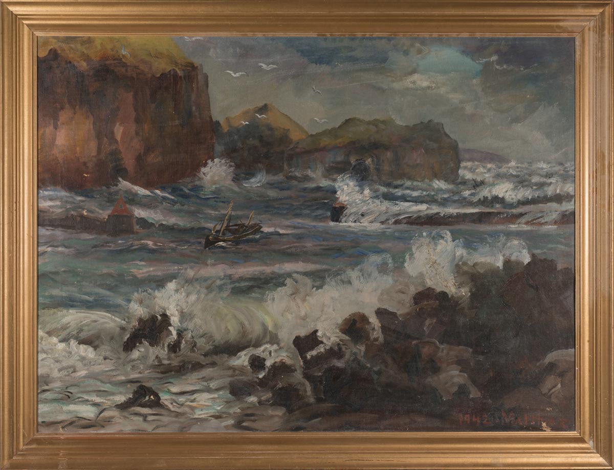 Innsiglingin í Vestmannaeyjum - Olía - 1942. Merkt. 72 x 99 cm