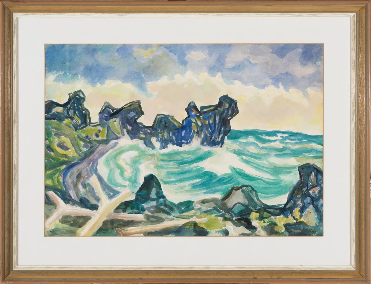 Flóð í fjöru - Vatnslitir - Merkt. 53 x 76 cm