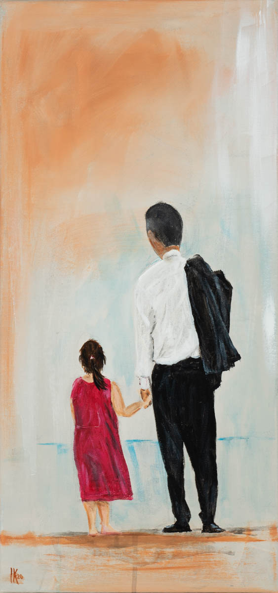 Með pabba - Akrýl - 2020. Merkt. 60 x 30 cm