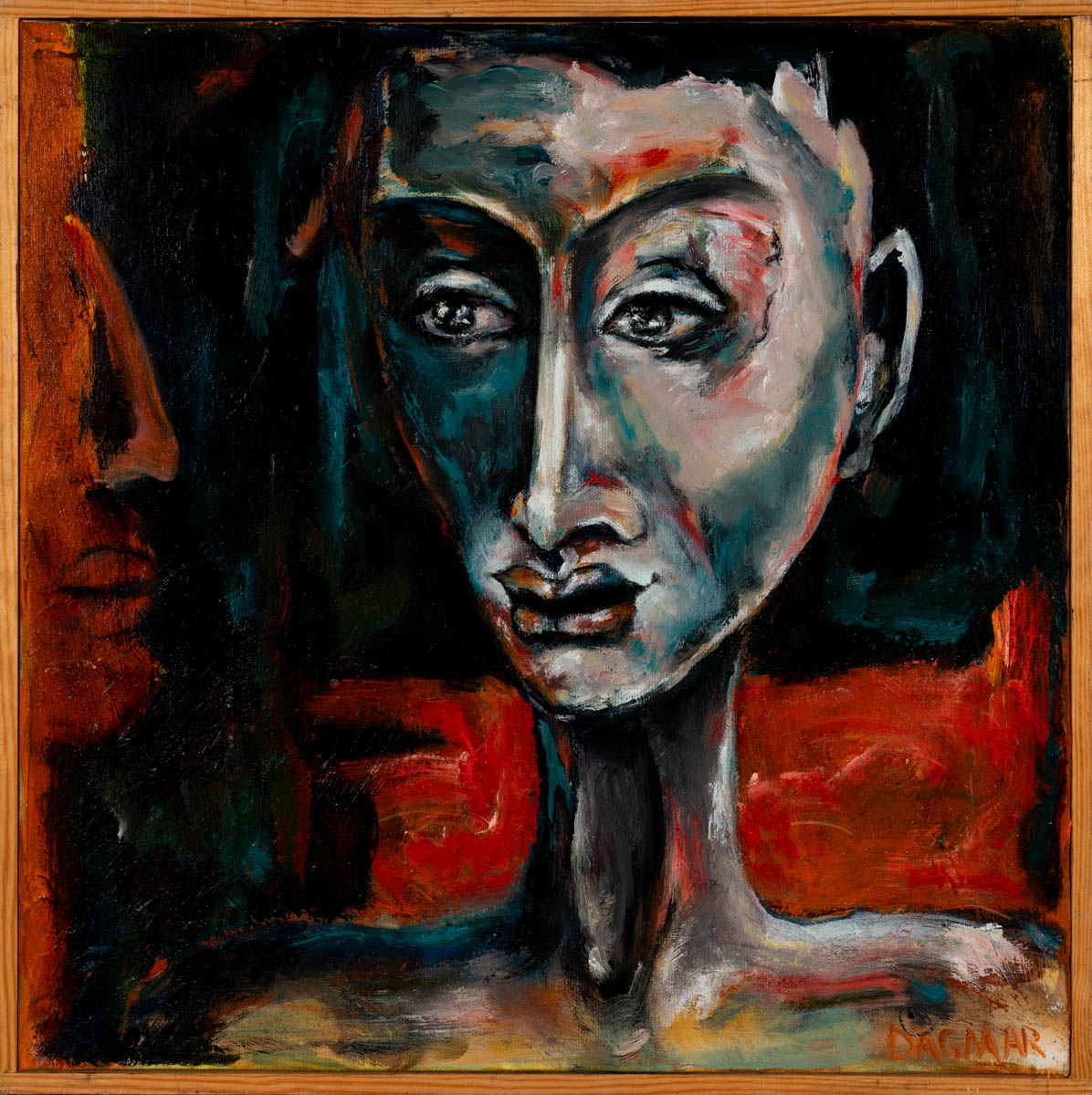 Allt annars staðar - Olía - Merkt. 40 x 40 cm