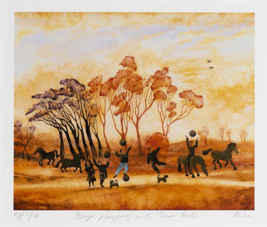 Boys playing with their balls - óinnrammað - Prent - Merkt. 30 x 46 cm