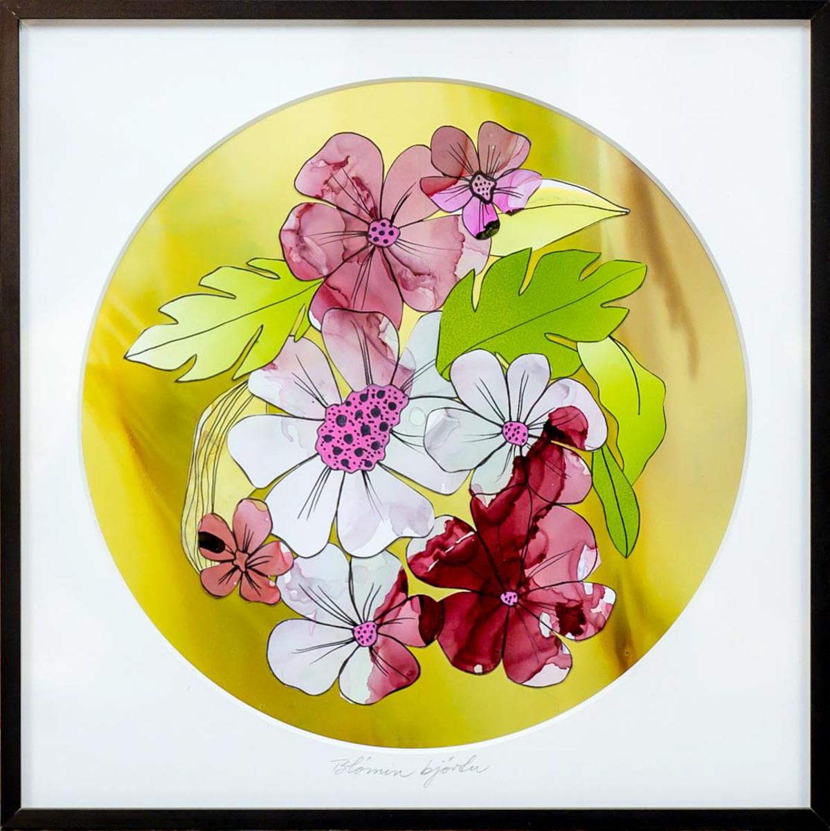 Blómin björtu - Blönduð Tækni - 2022. Merkt. 25 x 25 cm