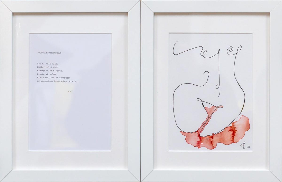 Þvottaleiðbeiningar - 2 verk saman - Blönduð Tækni - 2022. Merkt. 17 x 12 cm