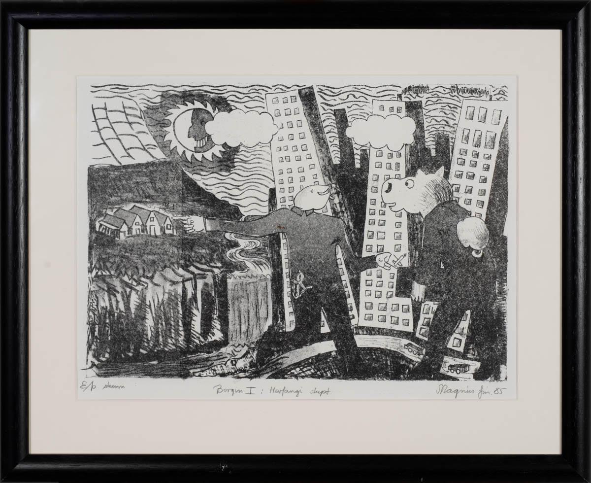 Borgin I: Herfangi skipt - Þrykk - E/Þ. 1985. Merkt. 30 x 42 cm