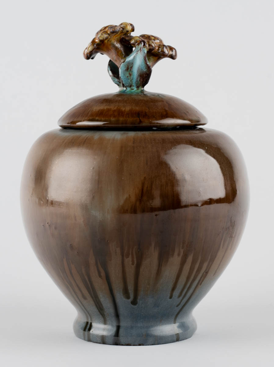 Krús með loki og blómahandfangi - Keramik - 1933. Merkt. 20 cm