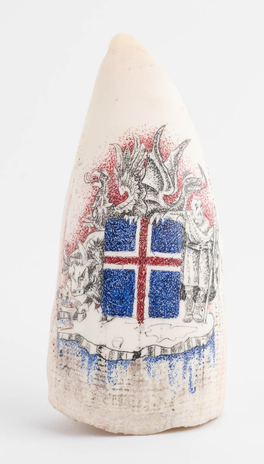 Búrhvalstönn - 341g - Blönduð Tækni - Ómerkt. 14 x 7 cm