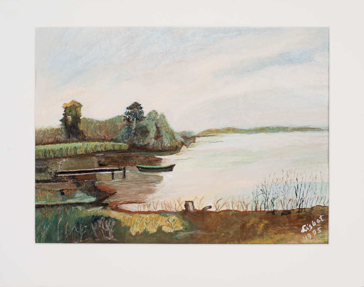 Bátabryggja - Án ramma - Gvass - Merkt Lísbet 1995. Merkt. 28 x 38 cm