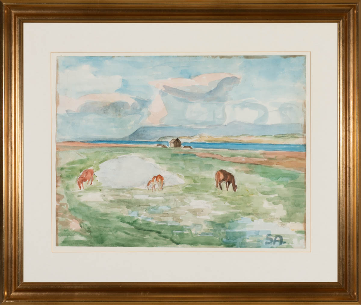 Hestar í sveit - Vatnslitir - Merkt. 45 x 57 cm