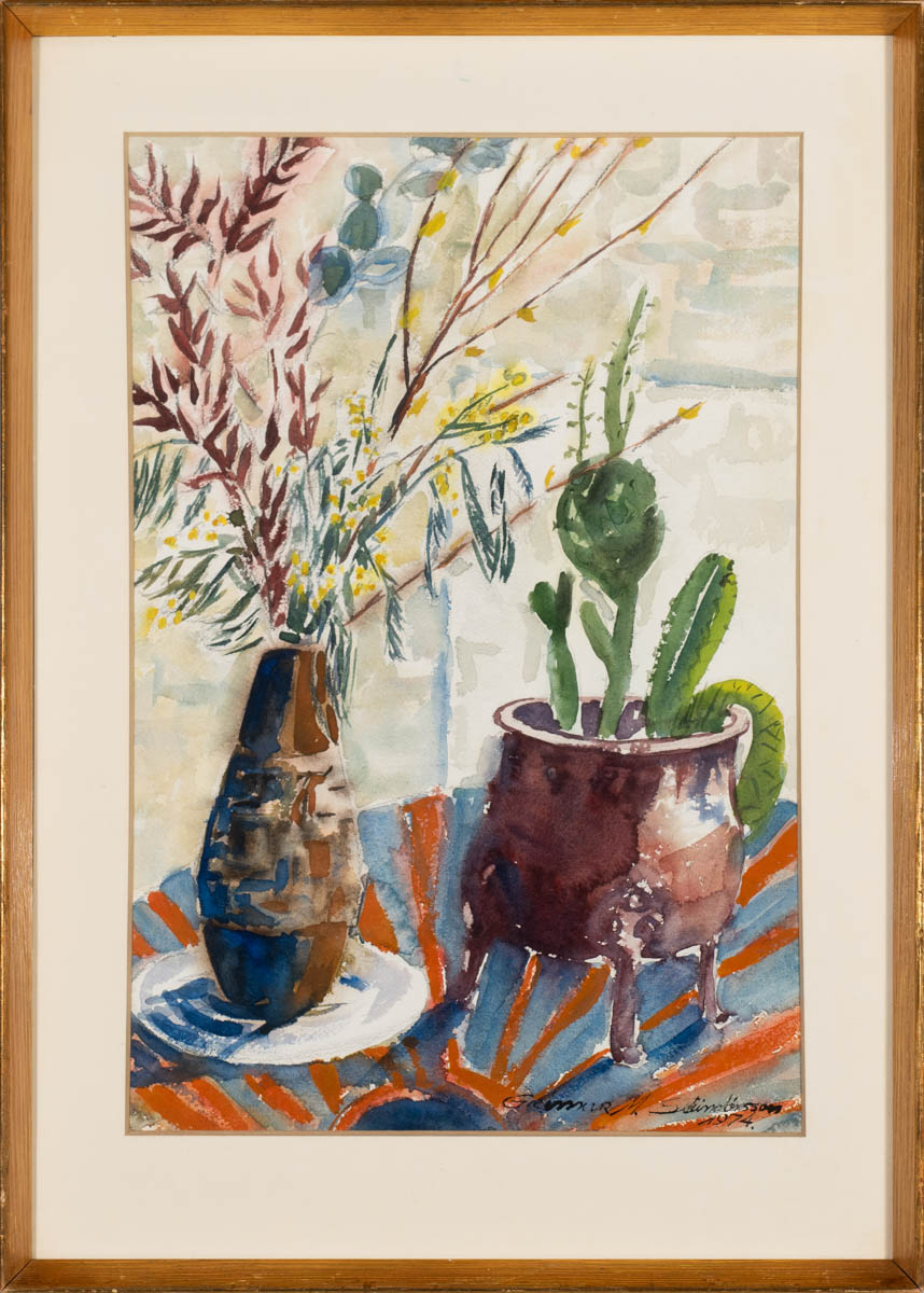 Uppstilling á borði - Vatnslitir - 1974. Merkt. 53 x 35 cm
